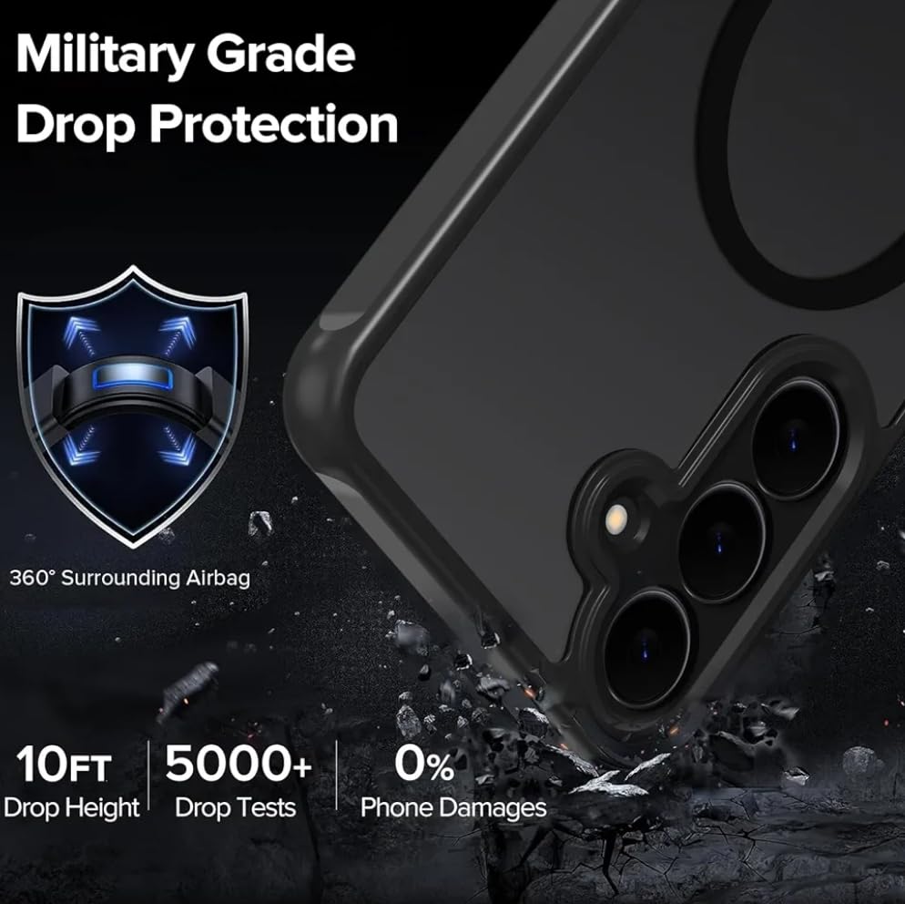 • [حماية قوية من السقوط من الدرجة العسكرية] --- مصنوع من إطار من السيليكون السائل وظهر من البولي كربونات. اللوحة الخلفية مصنوعة من البولي كربونات، وهي نفس المادة المستخدمة في الزجاج المقاوم للرصاص، يحتوي ممتص الصدمات المصنوع من السيليكون الناعم على "وسادة هوائية" في كل زاوية لتخفيف الصدمات والارتطامات الشديدة. هيكل ممتص للصدمات وظهر مقاوم للخدش يجتمعان معًا لحماية موبايلك من السقوط والخدوش.