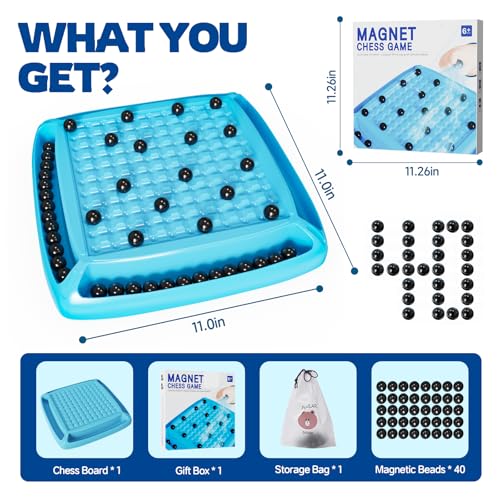 LLESSOO - لعبة شطرنج مغناطيسية، ألعاب لوحية للأطفال بعمر 6-8-12 سنة وللبالغين ، ألعاب عائلية جماعية، لعبة شطرنج مع 40 قطعة مغناطيسية، هدايا ممتعة لأعياد ميلاد الأطفال