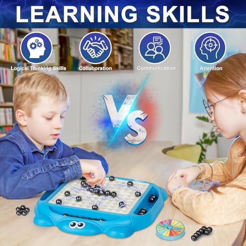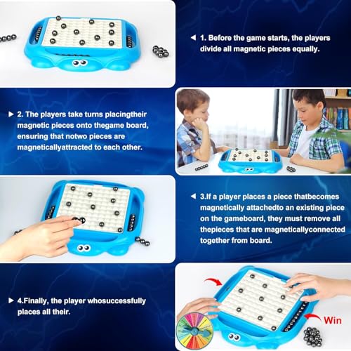 - ️【قواعد لعبة مثيرة】تم تصميم هذه اللعبة التكتيكية المغناطيسية على سطح الطاولة لتحدي عقلك من خلال التنبؤ بحركات خصمك وتخصيص تصميمك. للفوز بالتحدي المغناطيسي، تحتاج إلى وضع المغناطيسات داخل اللوح دون توصيلها معًا. إذا صادفت مغناطيسات متصلة أثناء دورك، يجب عليك جمعها وإضافتها إلى مجموعتك. أول لاعب تنفد لديه المغناطيسات هو الفائز.