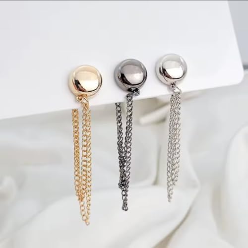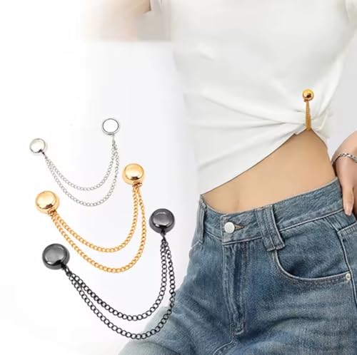 Generic - مشابك مغناطيسية للملابس مزودة بأزرار وسلسلة لشد الخصر قابلة للتعديل تناسب البنطلونات الجينز والفضفاضة والطويلة الساقين وتثبيت حافة الملابس، قطعتين، فضي