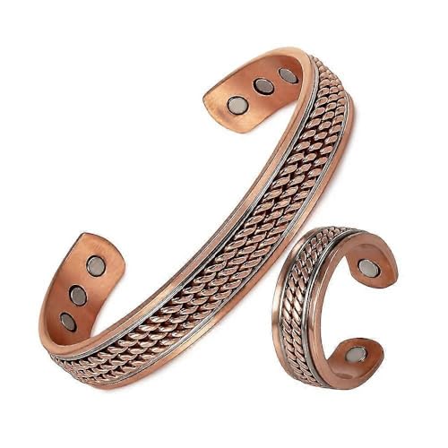 Generic - طقم مكون من أسورة وخاتم نحاسيين مغناطيسيين للرجال والنساء مع 6 مغناطيس النيوديميوم للأسوارة و 2 مغناطيس للخاتم