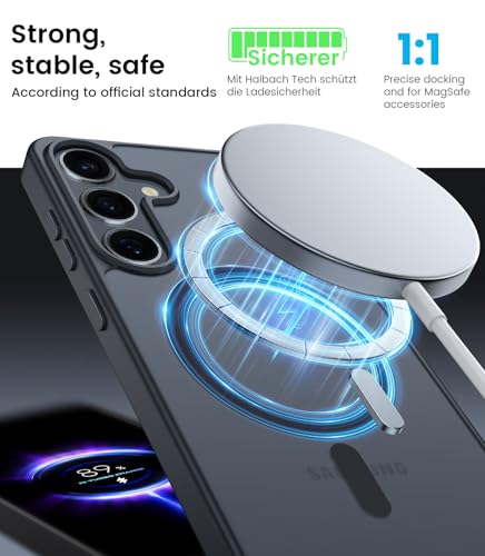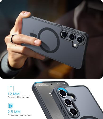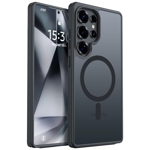 ÁRBOLORO - جراب مغناطيسي شفاف غير لامع ومضاد للصدمات ومضاد لبصمات الأصابع لموبايل سامسونج جالاكسي S24 الترا 6.8 بوصة متوافق مع ماج سيف، بلون أسود