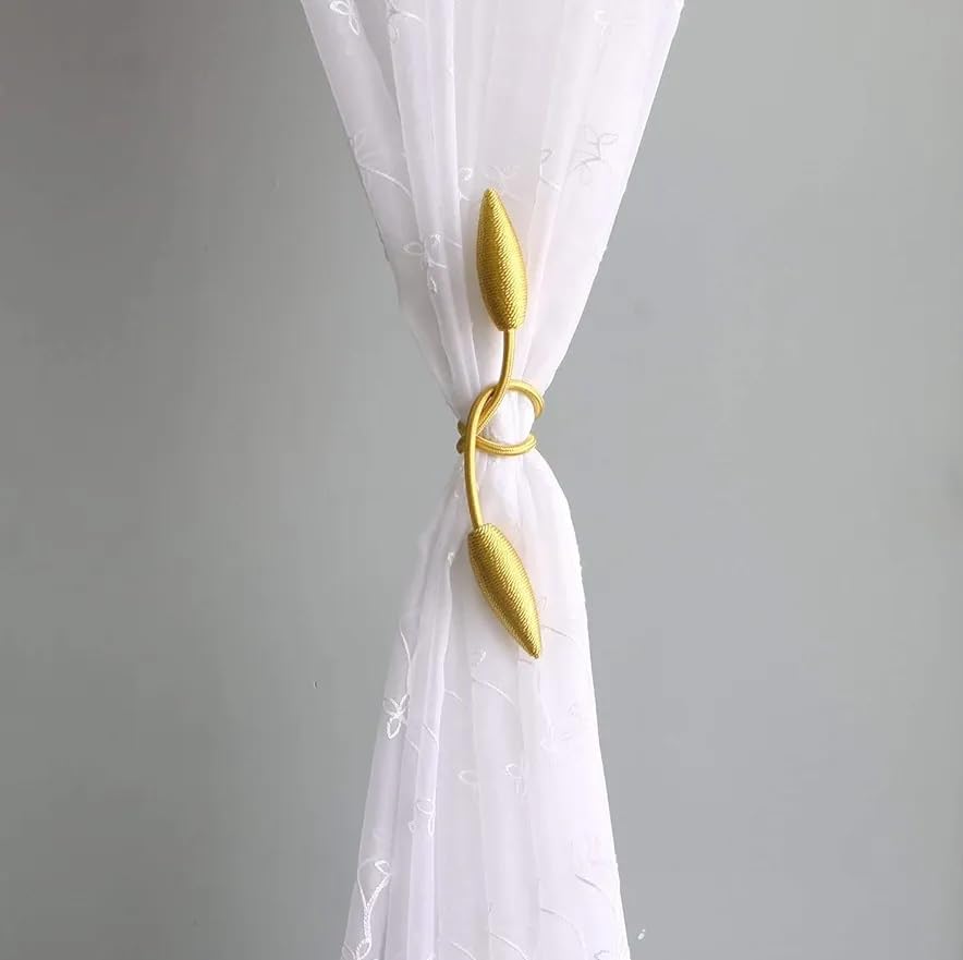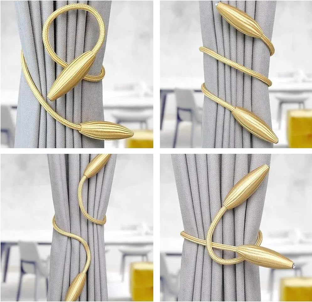 Generic - اربطة و ماسك ستارة مغناطيسي بحبل معدني مرن يمكن تشكيله - ذهبي - 2 قطعة