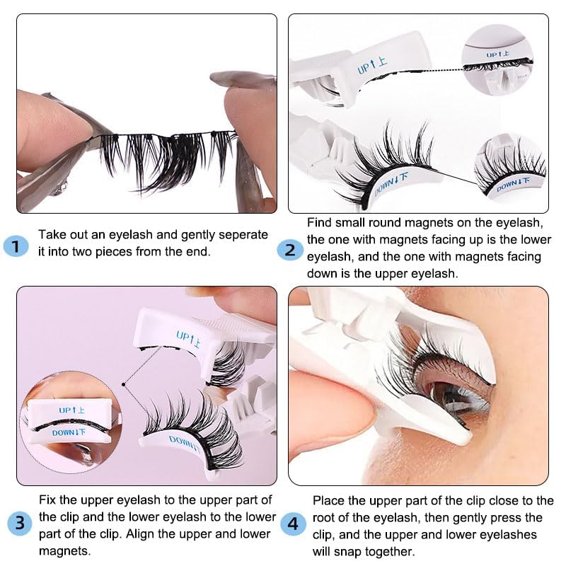 - 【رموش مغناطيسية صناعية】4 خطوات فقط لوضع رموش مانجا الصناعية المغناطيسية. ① قومي بتجعيد رموشك الطبيعية. ② تحتوي كل رموش مغناطيسية على طبقتين. لاستخدامها، تحتاج أولاً إلى فصل طبقتين من الرموش بأصابعك. ③ ضعي الرموش العلوية والسفلية على أداة التوزيع، ويرجى ملاحظة أن القطع المغناطيسية العلوية والسفلية موضوعة في مواجهة بعضها البعض. ④ ضعي الجزء العلوي من أداة وضع الرموش على قاعدة رموشك الطبيعية بلطف، اضغطي عليها وأغلقها، تمامًا مثل استخدام أداة تجعيد الرموش