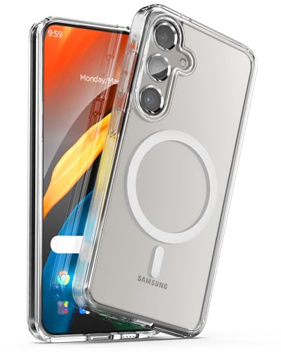 EVCASOY - جراب مغناطيسي لموبايل سامسونج جالاكسي S24 FE متوافق مع ماج سيف، جراب موبايل رفيع من الدرجة العسكرية للحماية من السقوط والاصفرار - غطاء جوال شفاف متين ومقاوم للصدمات (شفاف)