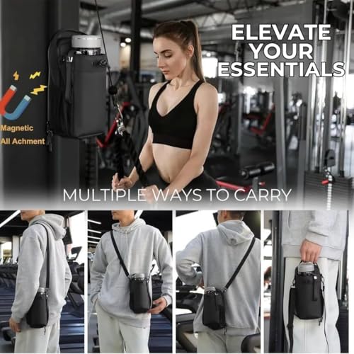 xylomart - شنطة مغناطيسية لصالة الالعاب الرياضية، شنطة زجاجة مياه مغناطيسية، حامل زجاجة مياه متعدد الاغراض مع جيوب للموبايل، متينة وخفيفة الوزن للرياضة والسفر والمشي لمسافات طويلة