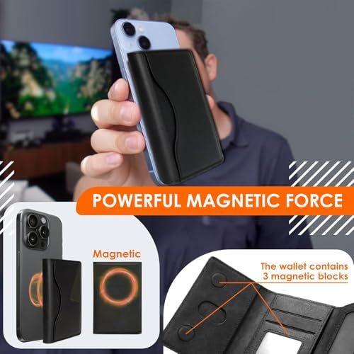 Oasisgalore - حامل بطاقات مغناطيسي للهاتف متوافق مع ماج سيف لايفون 16 15 14 13 12 برو ماكس/برو/بلس، محفظة رفيعة ثلاثية الطي للرجال من الجلد (اسود)