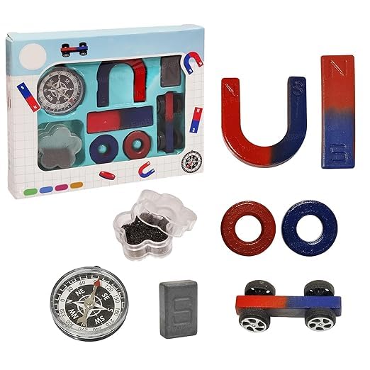 Generic - مجموعة تجارب علمية مغناطيسية مع ستة مغناطيسات بوصلة ومسحوق حديدي، مجموعة تعلم العلوم والتكنولوجيا والهندسة والرياضيات للمشاريع العلمية التي تصنعها بنفسك وأنشطة الاكتشاف المغناطيسي، هدية تعليمية