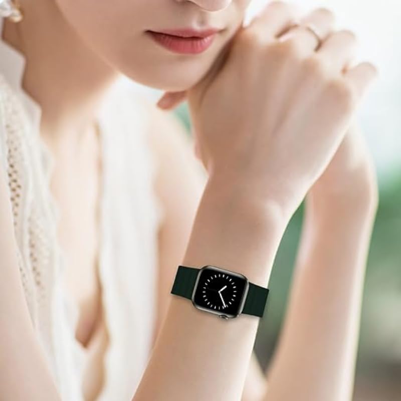 Generic - سوار معصم بديل مغناطيسي من السيليكون قابل للتعديل بتصميم ناعم ومتين وقفل مغناطيسي متوافق مع الساعات الذكية 38/40/41 ملم - لون أسود وبني