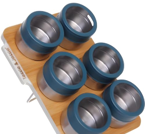 generic - رف توابل مغناطيسي - طقم من 6 قطع من الستانلس ستيل بقاعدة خشبية وتصميم مريح قابل للطي (شكل مستطيل)