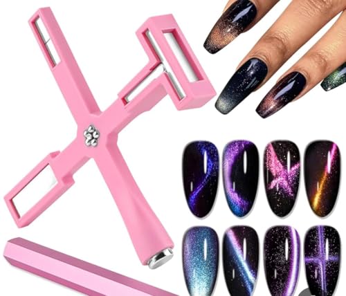 Generic - أداة مغناطيسية للمناكير بتصميم متقاطع، مع ٤ رؤوس للتصميم، أسود