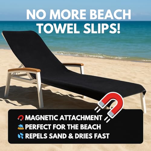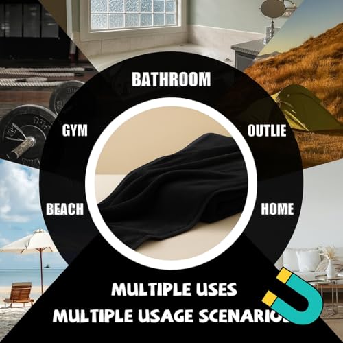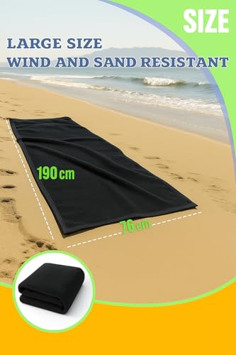Generic - فوطة مغناطيسية كبيرة سريعة الجفاف من المايكروفايبر بزوايا مغناطيسية، فائقة الامتصاص ومقاومة للرمل للشاطئ وحمام السباحة والسفر والجيم والتخييم 1.90 م × 76 سم (أسود)