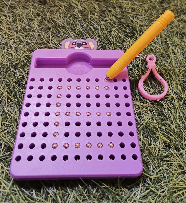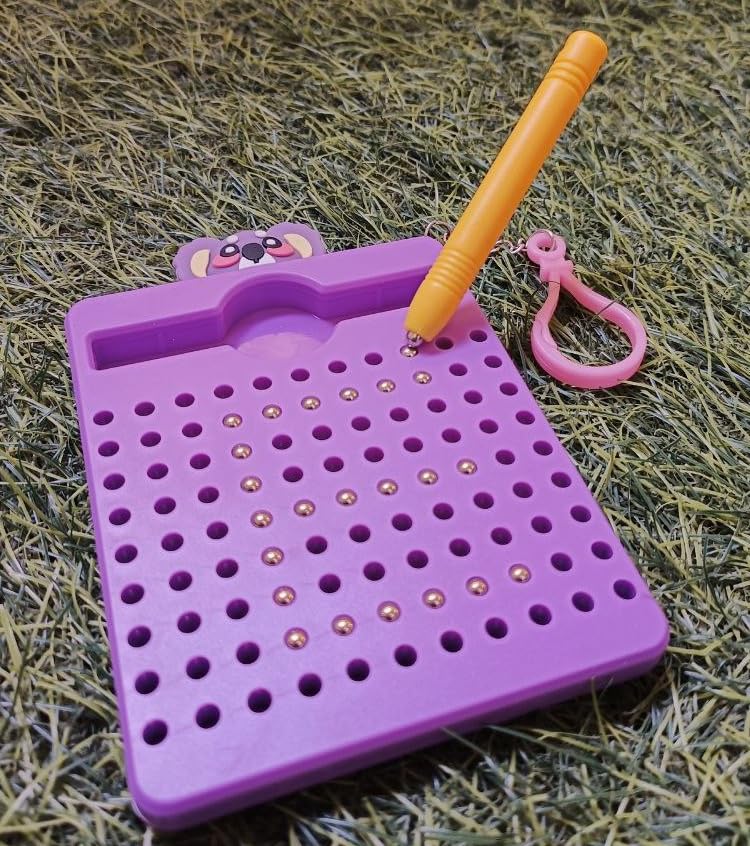 - دع القلم المغناطيسي الموجود بجانب قلمك ولوحة الخرزة هما ورقتك. استخدم خيالك لرسم الأشكال والحروف والصور، ووضع الخرز الفردي على السطح للحصول على تجربة لعب حسية. يمكن مسحه بطرف إصبعك، أو عن طريق التمرير عبر الخرز بجانب القلم.