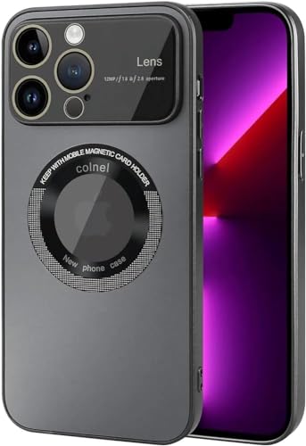 - جراب موبايل مغناطيسي للشحن اللاسلكي لهاتف ايفون 14 برو ماكس مع نافذة كبيرة - اسود