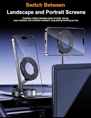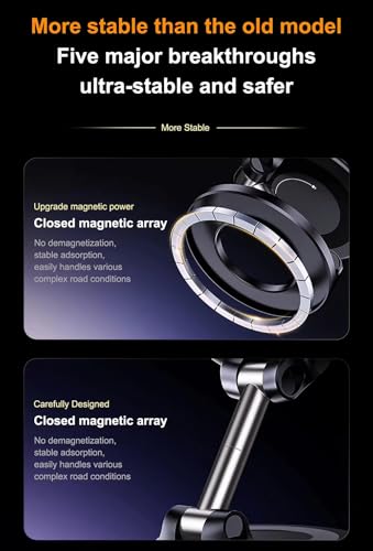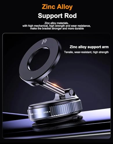 Generic - حامل مغناطيسي N52 للسيارة متوافق مع ماج سيف بخاصية الشفط الفراغي، قابل للدوران 360° ومصنوع من سبائك الزنك، قابل للتعديل بثلاثة محاور، يُثبّت على لوحة القيادة والزجاج الأمامي، قابل للطي بحجم الجيب