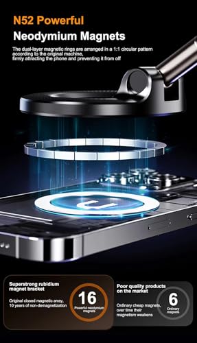 - مجموعة مغناطيس نيوديميوم N52 فائقة القوة: مصنوع من مغناطيس N52 عالي الجودة مُرتب في مصفوفة مغناطيسية مغلقة لتوفير قوة تثبيت فائقة. يوفر ثباتًا ممتازًا حتى على الطرق الوعرة دون فقدان المغناطيسية مع مرور الوقت.