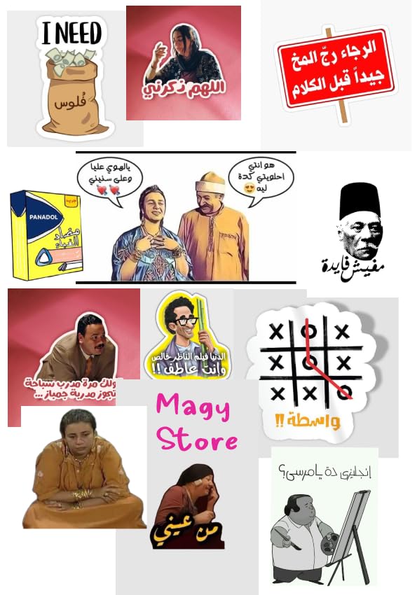 Generic - 12 قطعة من الملصقات الرسومية العربية من ماجي ستور - ملصقات مصرية مضحكة بشخصيات كلاسيكية واقتباسات ساخرة - ملصق فينيل مقاوم للماء للابتوب وزجاجة المياه وسجل القصاصات والهدايا