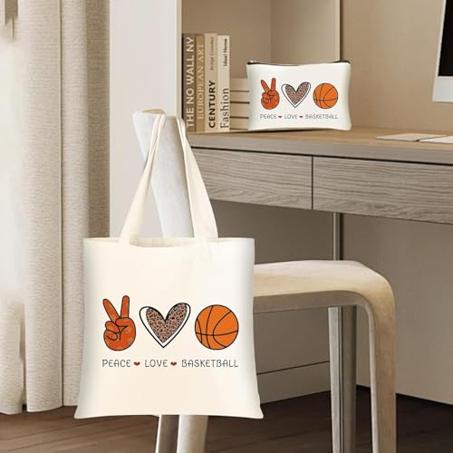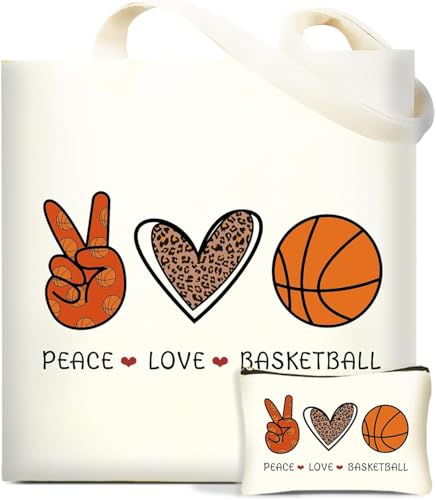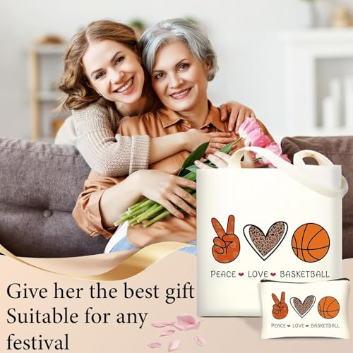 Generic - هدايا كرة السلة للنساء من ماجي ستور، هدايا عيد الميلاد والكريسماس لمحبي كرة السلة والاصدقاء، شنطة كبيرة توت قماشية مع شنطة مستحضرات تجميل