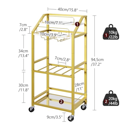 - مساحة تخزين واسعة متعددة الطبقات: تبلغ أبعاد العربة 40 سم طول × 28 سم عرض × 94 سم ارتفاع، تتضمن عربة المطبخ هذه رف للمشروبات وحوامل زجاجية، تستوعب 4 زجاجات و6 أكواب. يحافظ تصميمها المنظم جيدًا على ترتيب الأغراض بدقة لسهولة الوصول إليها.