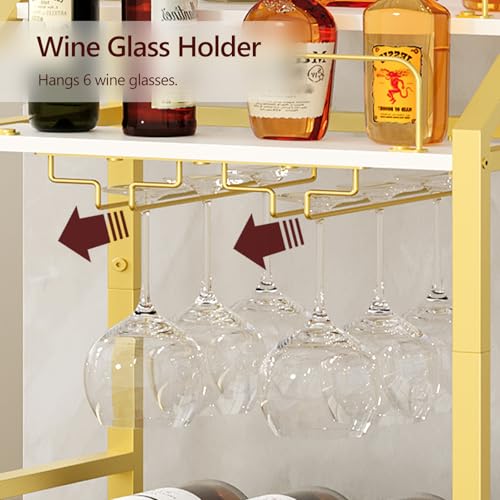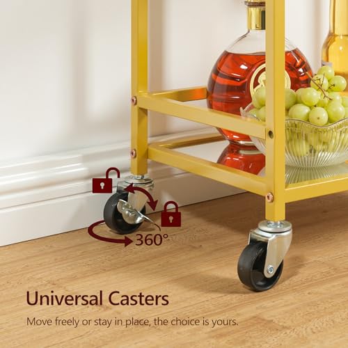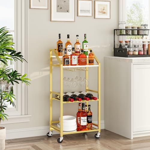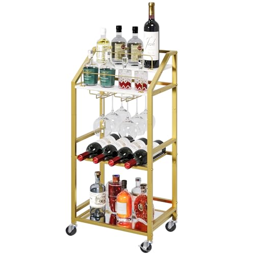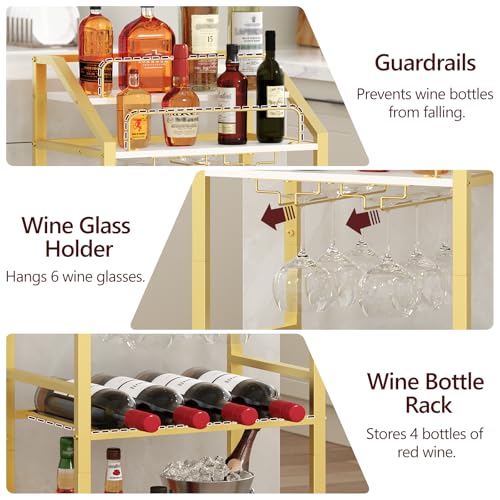 MAHANCRIS - عربة تقديم أطعمة ومشروبات مع رف عاكس، عربة تقديم طعام للمنزل، عربة مشروبات مع رف للمشروبات، عربة مطبخ بعجلات وحامل زجاجات، للمطبخ وغرفة الطعام، لون ذهبي وابيض، موديل RCJW67M01 من ماهانكريس