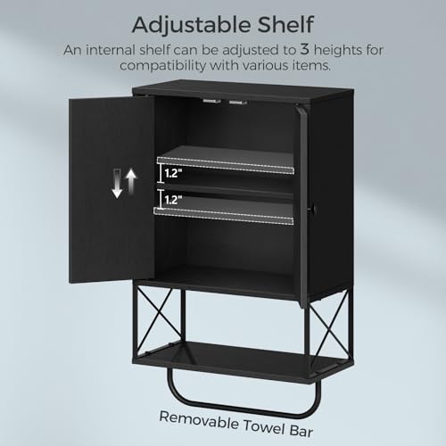 MAHANCRIS - دولاب تخزين حائط للحمام مع بابين ورف قابل للتعديل، منظم أدوية للمنزل الريفي مع رف فوط مثبت على الحائط من 3 طبقات فوق المرحاض للحمام وغرفة الغسيل بلون أسود من ماهانكريس