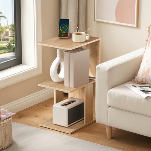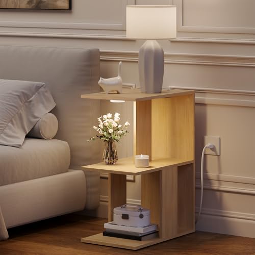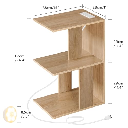 MAHANCRIS - طاولة جانبية مع قاعدة شحن من ماهانكريس، طاولة جانبية ضيقة للمساحات الصغيرة مع منافذ ومنافذ USB، طاولة جانبية ضيقة مع ضوء، طاولة بجانب السرير لغرفة المعيشة، طبيعي ETNA18E01