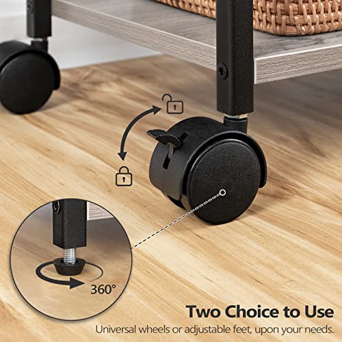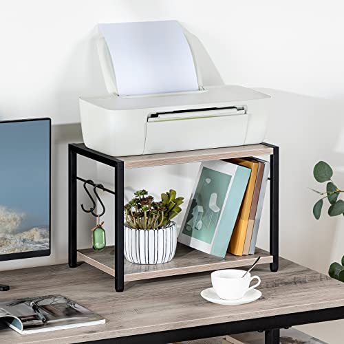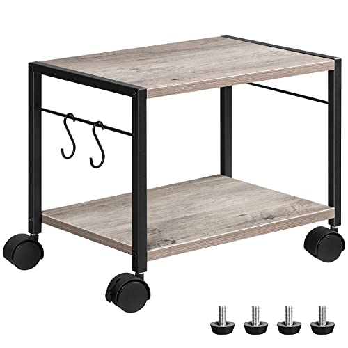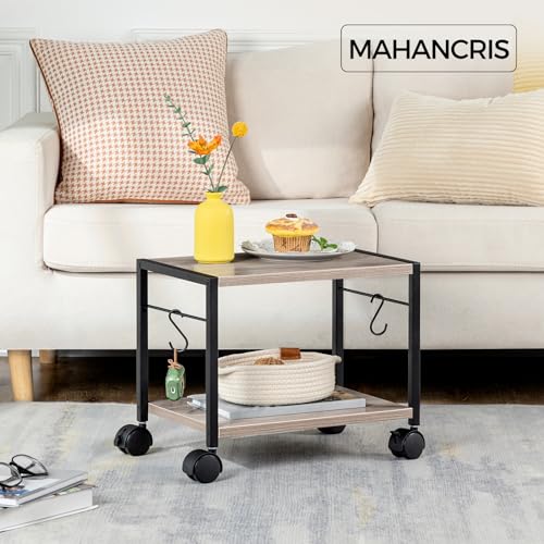 MAHANCRIS - حامل طابعة متنقل PTHG2001Z من ماهانكريس، عربة طابعة 2 طبقة بمساحة تخزين، طاولة طابعة تحت المكتب بعجلات و2 خطاف، حامل طابعة منزلي دوار للماسح الضوئي، رمادي