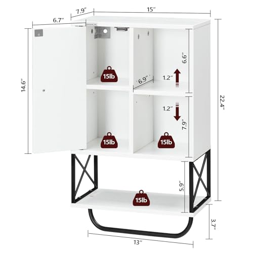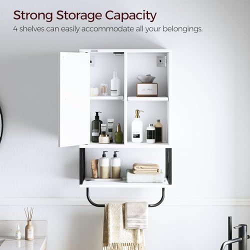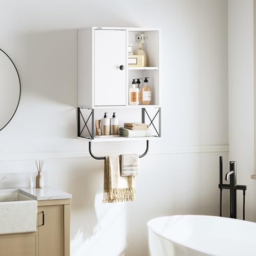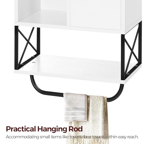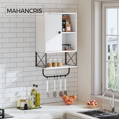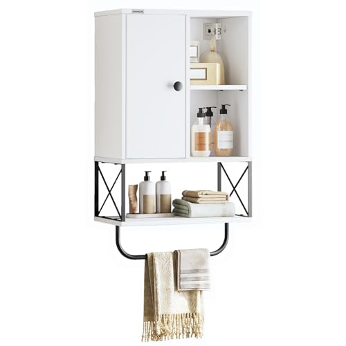 MAHANCRIS - خزانة تخزين تثبت على الحائط من ماهانكريس، خزانة ادوية خشبية مع رف قابل للتعديل وقضيب منشفة، خزانة حمام شبه مفتوحة من 3 طبقات للمطبخ والحمام وغرفة المعيشة، ابيض WCHW1001
