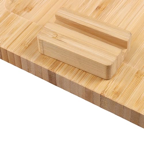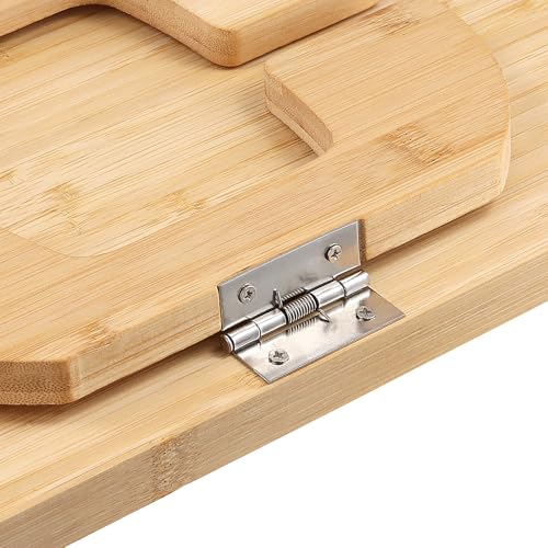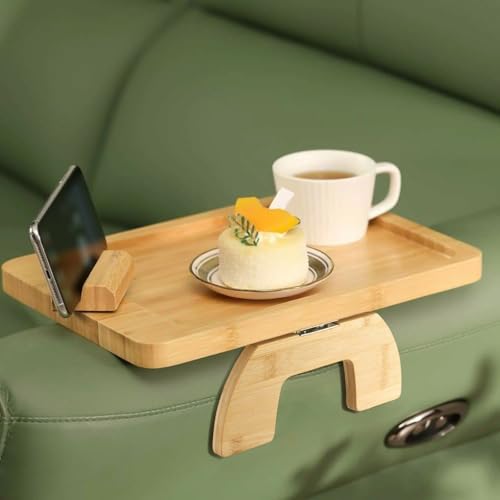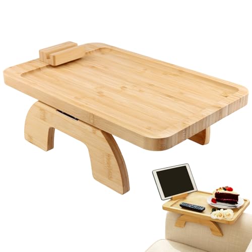 MAHIONG - طاولة مستطيلة بذراع الاريكة مقاس 38.8 × 24.8 × 2 سم، صينية اريكة قابلة للطي بمشبك مع حامل متحرك دوار، طاولة ذراع للاريكة من الخيزران لتناول الطعام والاكواب والشرب