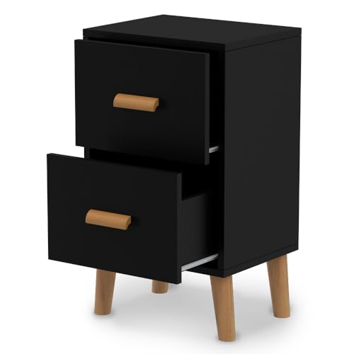 MAHMAYI OFFICE FURNITURE - طاولة جانبية خشبية عصرية على شكل حرف D من ماهماي، متعددة الوظائف مع درج واحد أو درجين، مناسبة لغرف المعيشة وغرف النوم (مزودة بدرج مزدوج باللون الأسود)