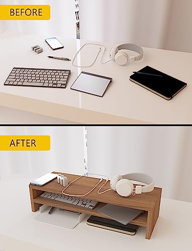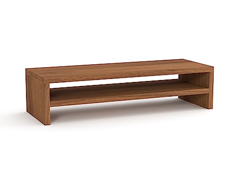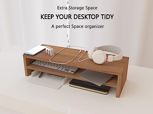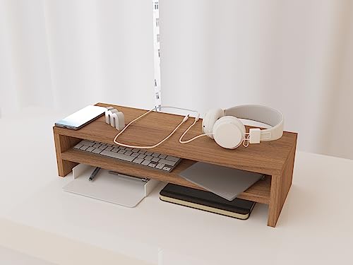 MAHMAYI OFFICE FURNITURE - حامل شاشة خشب مزود برف تخزين مكون من طبقتين من ماهماي اوفيس فيرنتشر، حامل شاشة للمنزل والمكتب والكمبيوتر المكتبي لتخزين الكيبورد واللاب توب وشاشة التلفزيون، لون بني ناتشورال ديجون والنت