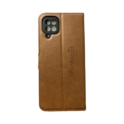 - جراب من الجلد الفاخر قابل للطي بقفل مغناطيسي عالي الجودة من محمولجي لموبايل سامسونج A12 - بني