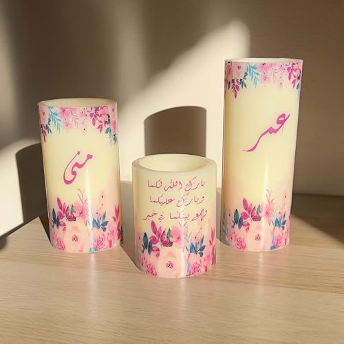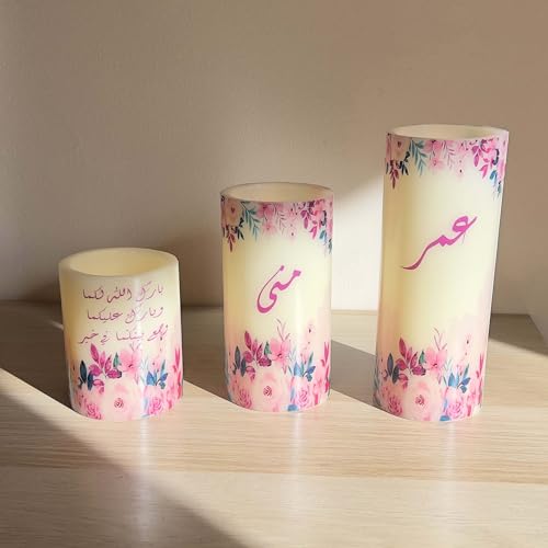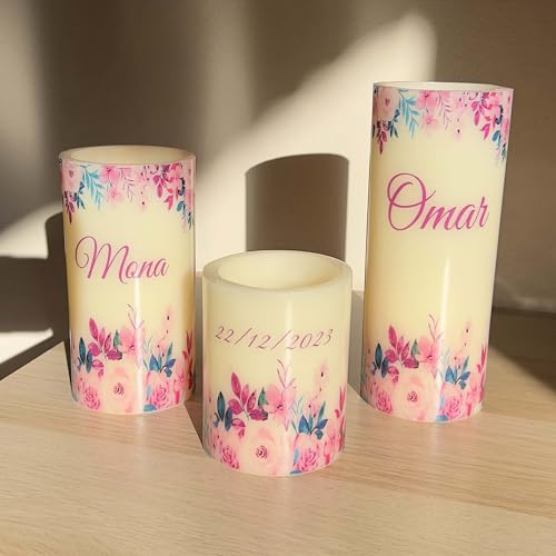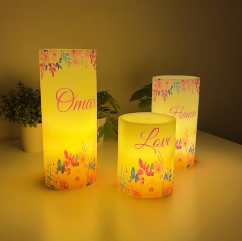 Generic - شموع زهرية ملونة، يمكن تخصيصها، شموع آمنة بدون لهب من ماي كاندلز اند جيفت شوب، طقم من 3 شموع