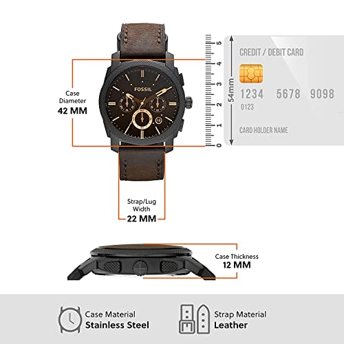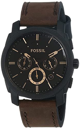 Maicrogear - ساعة فوسيل ماشين انالوج بعقارب ومينا اسود للرجال من مايكروجير، FS4656، سوار بني