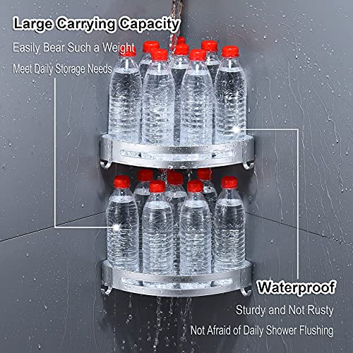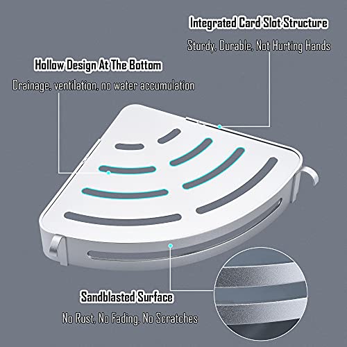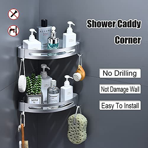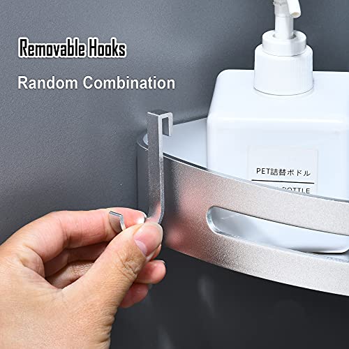 maifey - رف دش، رف دش بدون ثقب، رف زاوية للحمام، رف حمام معدني، سلة دش حائط مثلثة مع 4 خطافات، رف حائط للشامبو (قطعتين، فضي بالرملي)