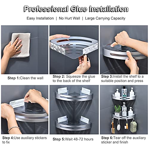 - سهل التركيب: يمكن تركيب رف الحائط للحمام بمادة لاصقة احترافية بدون ثقب، مما لا يتلف الجدار. يمكن لأي شخص تركيبه بسهولة. بعد التركيب المناسب، يمكنه حمل 10 كغم. (بعض الجدران غير مناسبة للتركيب بدون ثقب، يرجى اختيار تركيب الثقب).