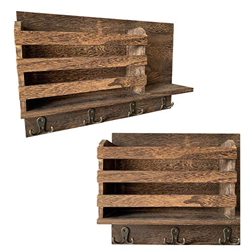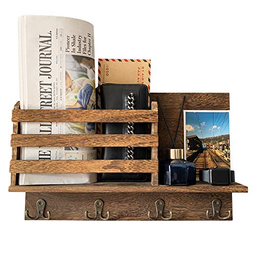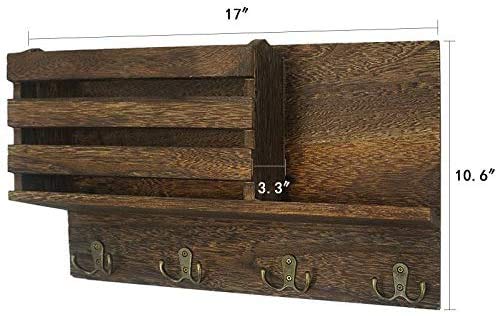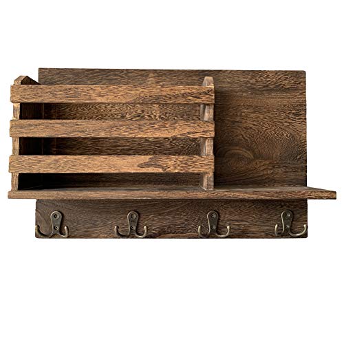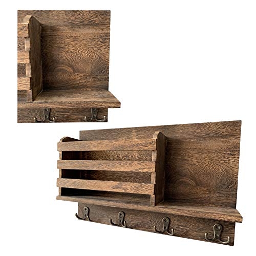 UJEFF - حامل بريد خشبي يثبت على الحائط من يو جيه اي اف اف، يستخدم كمنظم مفاتيح وحامل للجدران مع 4 خطافات مفاتيح معدنية مزدوجة ورف عائم بنمط ديكوري ريفي للمدخل والغرف والممرات والمطبخ والمكتب، خشب معدني