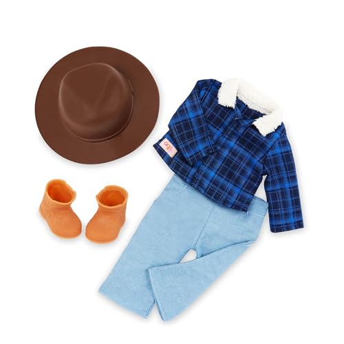 Our Generation - عروسة ولد من اور جينيريشن - لعبة خيالية بزي غربي وقبعة ريفية وعيون عسلية نابضة بالحياة وشعر بني مموج، للأطفال من سن 3 سنوات - داستن - 46 سم
