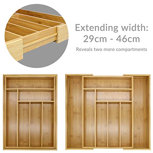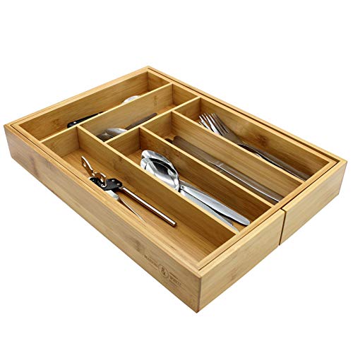 Maison & White - درج ادوات مائدة من الخيزران من ميزون اند وايت | 6-8 مساحات تخزين قابلة للتعديل | صينية متينة بشكل طبيعي مقاومة للماء | منظم مطبخ خشبي | M W