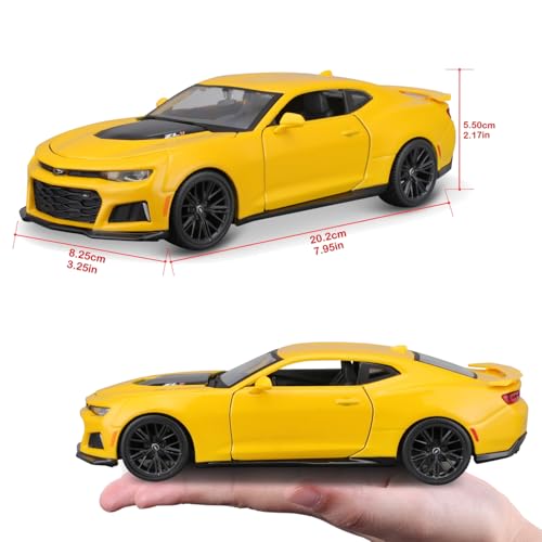 - نسخة طبق الأصل: يأتي المجسم بطول تقريبي يبلغ 20 سم وهيكل معدني بلون أصفر حيوي مع تصميم خارجي دقيق وعجلات رياضية بلون أسود بتفاصيل واقعية