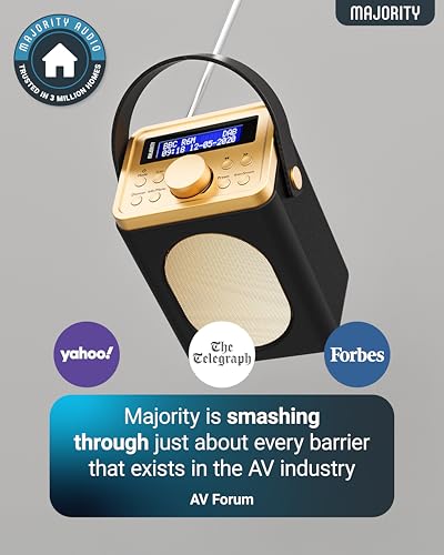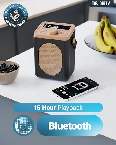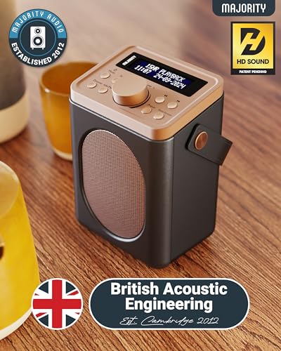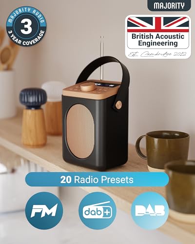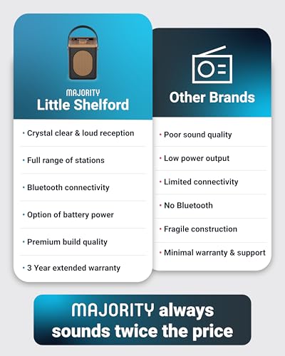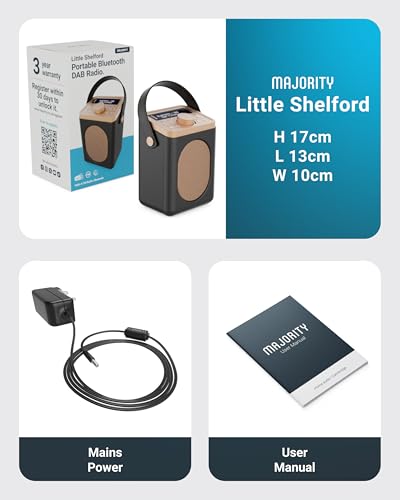 MAJORITY - راديو محمول ليتل شيلفورد | اتصال بلوتوث | راديو اف ام + DAB+DAB | منبه مزدوج مع وظيفة الغفوة | 20 محطة مضبوطة مسبقًا من ماجوريتي