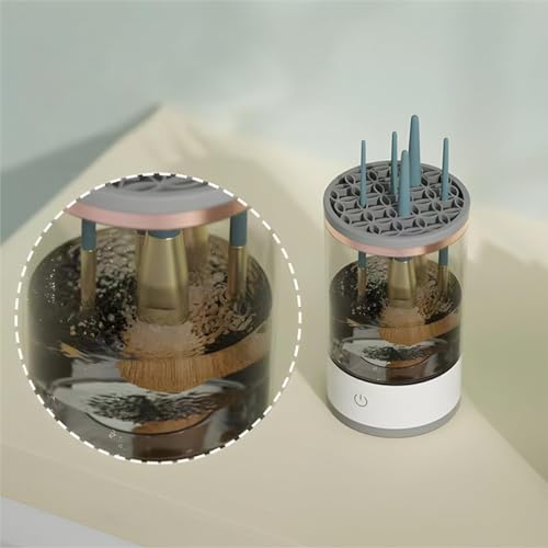 - منظف فرشاة أوتوماتيك: يتميز منظف فرش المكياج بتصميم محسن، ولا يحتاج إلى التنظيف باليد ويمكن استخدامه مع سائل التنظيف لتنظيف بقايا مستحضرات التجميل بالكامل. بعد الغسيل، يمكنك قلب جراب السيليكون لتجفيف الفرش.