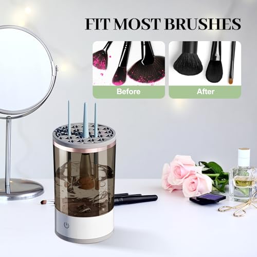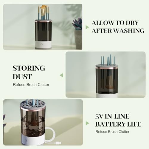 FUFRE - مجفف تنظيف فرش المكياج، منظف فرش كهربائي USB، منظف فرش المكياج، جهاز تنظيف عميق تلقائي لمستحضرات التجميل، اداة فرش المكياج لجميع الاحجام