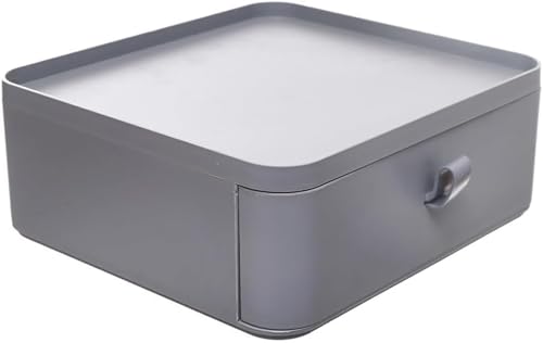 Spaceshoop - صندوق تخزين ومنظم بأدراج متعدد المستويات، صندوق تخزين للأدوات المكتبية والمجوهرات والإكسسوارات، علبة تنظيم الأدوات على سطح المكتب (رمادي فاتح)