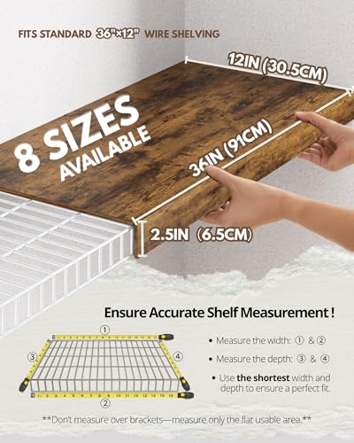 - [خشب هندسي متين]: مصنوعة من خشب هندسي عالي الكثافة، أغطية الأرفف الخشبية هذه للأرفف السلكية تقاوم الانبعاجات والترهل تحت الأشياء الثقيلة. عبوة من 4 قطع تناسب الأرفف السلكية القياسية مقاس 36 × 12 انش بقوة موثوقة