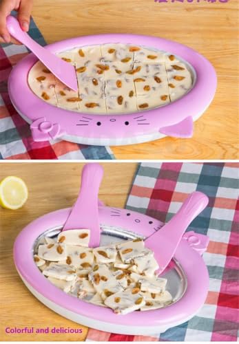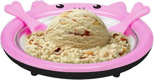 Generic - ماكينة الآيس كريم الملفوف من فولاذ مقاوم للصدأ، مناسبة للفريزر ولتحضير الآيس كريم والفواكه المثلجة والزبادي، مع ملعقتين سباتولا، لون وردي
