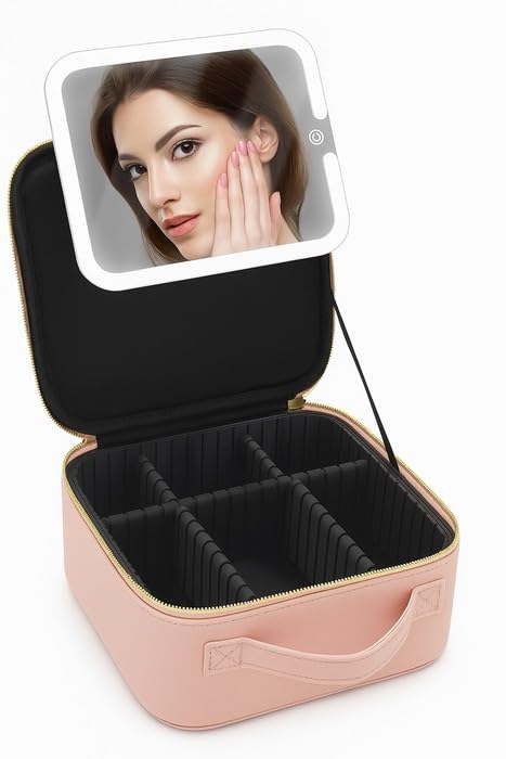 Generic - شنطة مكياج لتنظيم مستحضرات التجميل مع مراية مضيئة مغناطيسية كبيرة قابلة للإزالة،3 أوضاع ألوان وسطوع قابل للتعديل وزاوية 360°