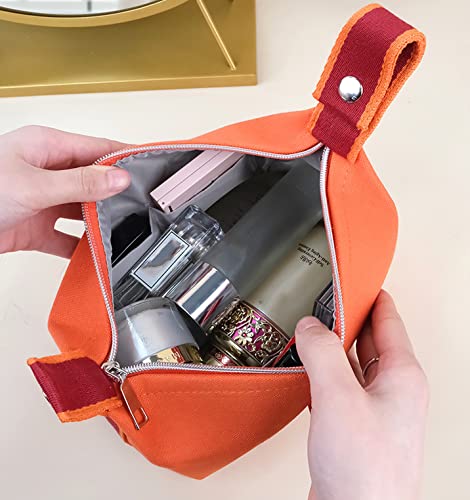 Excefore - شنطة مكياج عصرية محمولة من القماش بلون برتقالي واحمر مع مقبض ومقسم لتنظيم المكياج للنساء