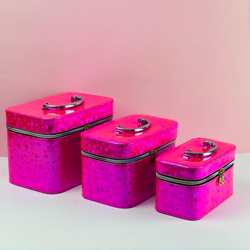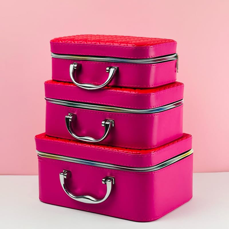 Generic - شنط مكياج لتنظيم مستحضرات التجميل، 3 قطع، تصميم انيق باللون الفوشيا، مقاس كبير: 23 × 15 × 17 سم، مقاس متوسط: 21 × 13 × 14 سم، مقاس صغير: 19 × 10 × 10 سم
