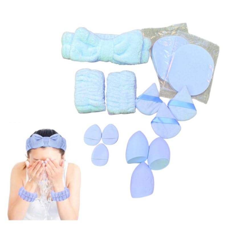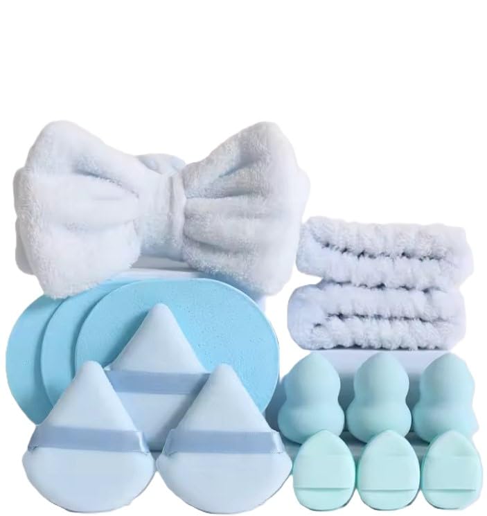 Generic - مجموعة إسفنجات مزج المكياج وتجميل على شكل دمعة لخلط كريم أساس ناعمة خالية من اللاتكس للمكياج السائل والكريم والبودرة ومستحضرات تجميل للحصول على مظهر خالي من العيوب، أزرق، 14 قطعة